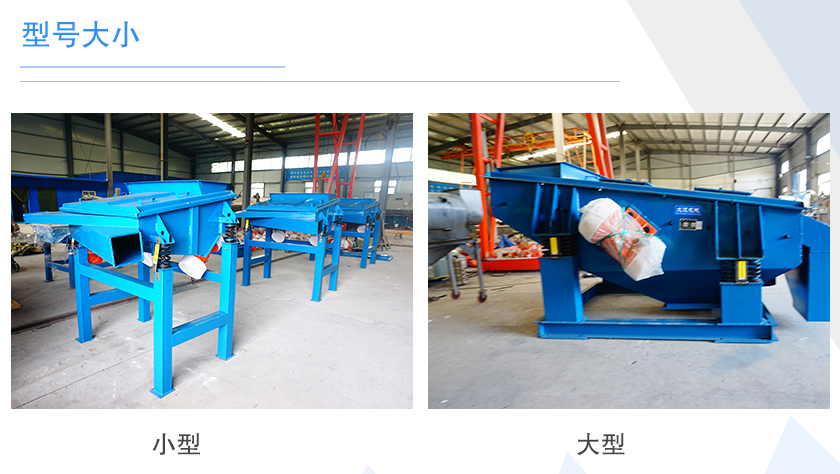 直線(xiàn)篩型號(hào)主要有DZSF515、DZSF520、DZSF525、DZSF1020、DZSF1025、DZSF1030,不同型號(hào)的直線(xiàn)篩,其篩面寬度和長(zhǎng)度是不一樣不同的,型號(hào)越大,篩面面積就越大,處理量也就越大,同樣其價(jià)格也會(huì)越貴。