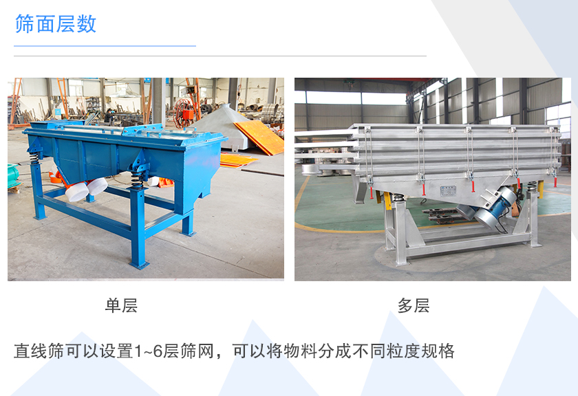 直線(xiàn)篩可以設(shè)置1~6層篩網(wǎng),可以將物料分成不同粒度規(guī)格,隨著層數(shù)的增加,其耗材和做工成本就越高,所以?xún)r(jià)格也會(huì)相應(yīng)增高。