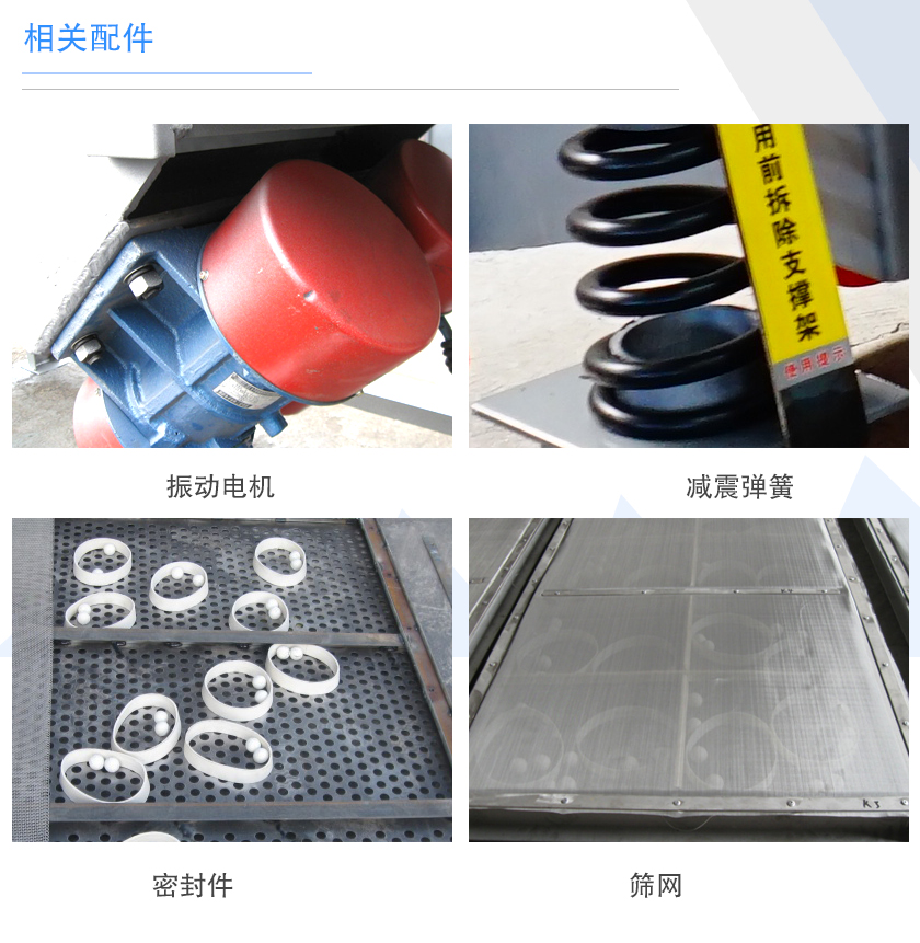 直線(xiàn)振動(dòng)篩的配件包含:振動(dòng)電機(jī)、減震彈簧、密封件、篩網(wǎng)、清網(wǎng)裝置,振動(dòng)電機(jī)作為一臺(tái)篩分設(shè)備的動(dòng)力源其優(yōu)劣直接關(guān)系到設(shè)備的產(chǎn)量與使用壽命,篩網(wǎng)的選用也應(yīng)該注重篩網(wǎng)的絲經(jīng)、材質(zhì),選擇不同配置的設(shè)備,其價(jià)格會(huì)有所影響。